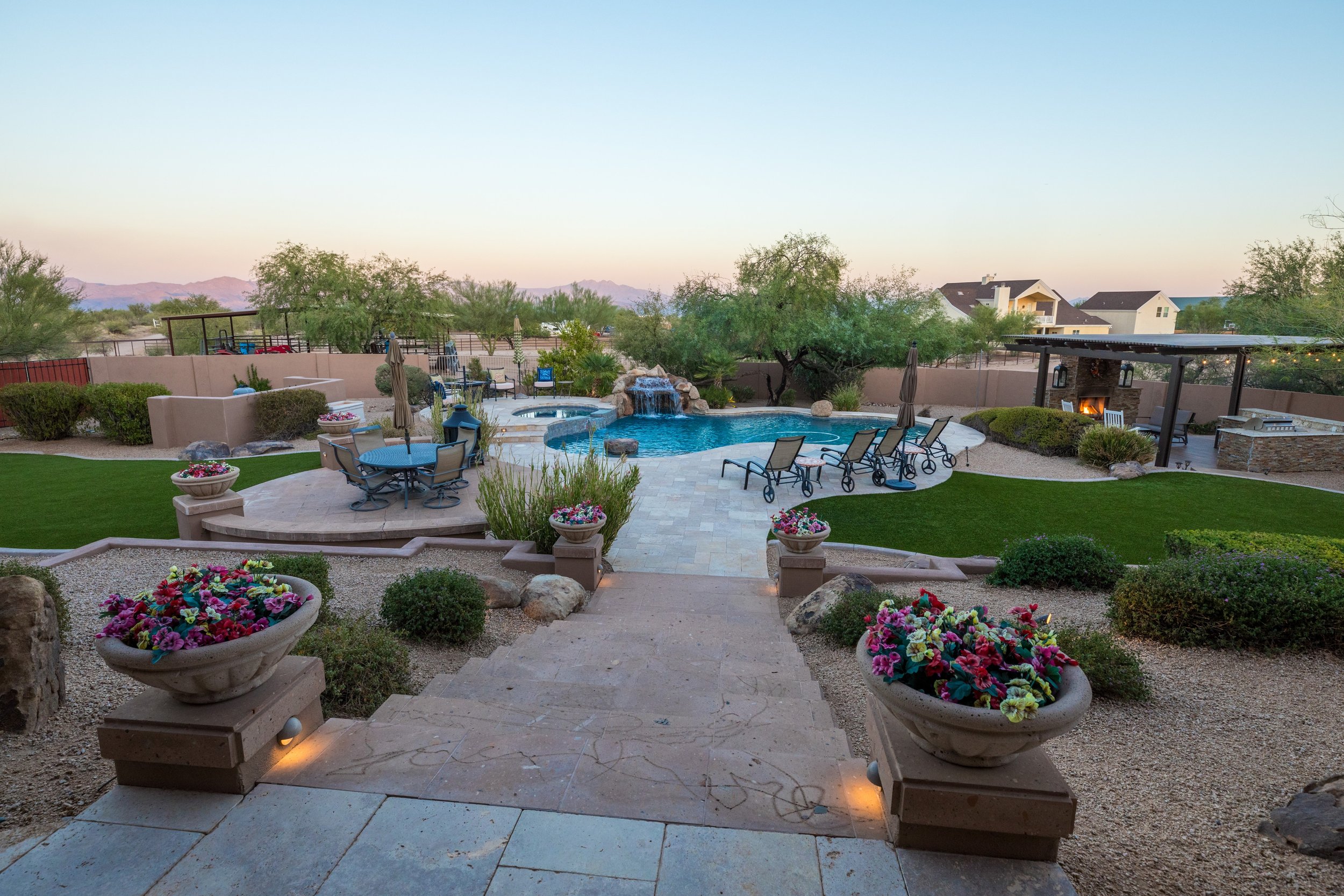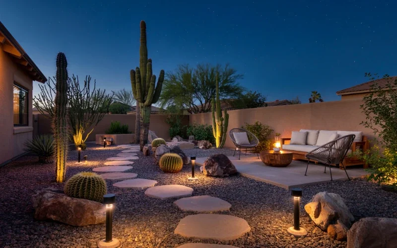 Arizona nights are a selling point. Good lighting makes the yard feel like a resort.